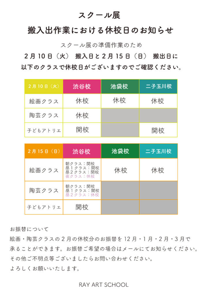 2 月10 日(火) 搬入日と2 月15 日(日) 搬出日に